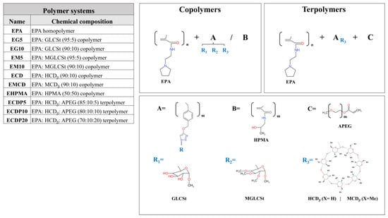 - Redondo, J.A.; Martínez-Campos, E.; Navarro, R.; Pérez-Perrino, M.; Reinecke, H.; Gallardo, A.; Corrales, G.; Fernández-Mayoralas, A.; Elvira, C. Hydroxyl versus permethylated glycopolymers as gene carriers. Eur. J. Pharm. Biopharm. 2017, 117, 68–76. [Google Scholar] [CrossRef]
