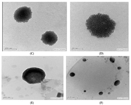 Freshly prepared optimized Mag-loaded formulations were imaged by TEM. A drop of the selected ufasomal dispersion was placed on a carbon-coated copper grid, negatively stained with 1% phosphotungstic acid, and then allowed to dry at room temperature for 10 min prior to examination. The sample was imaged using a JEOL 2100 TEM operating at 200 kV, and real-time images were recorded with a 500 ms exposure time. The fresh sample was continuously delivered to the tip of the holder. All dispersions were observed at different magnification powers [27,28].