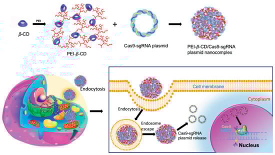 - Zhang, Z.; Wan, T.; Chen, Y.; Chen, Y.; Sun, H.; Cao, T.; Songyang, Z.; Tang, G.; Wu, C.; Ping, Y.; et al. Cationic Polymer-Mediated CRISPR/Cas9 Plasmid Delivery for Genome Editing. Macromol. Rapid Commun. 2019, 40, e1800068. [Google Scholar] [CrossRef]