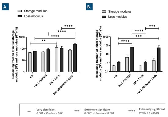 3.5. The Use of HA-L-PNIPAM Efficiently Improves HA-Based Hydrogel Resistance toward Enzymatic Degradation