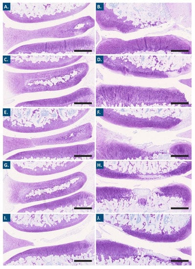- Gerwin, N.; Bendele, A.M.; Glasson, S.; Carlson, C.S. The OARSI histopathology initiative—Recommendations for histological assessments of osteoarthritis in the rat. Osteoarthr. Cartil. 2010, 18, S24–S34. [Google Scholar] [CrossRef]