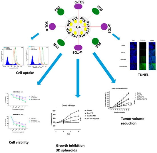 - Bhatt, H.; Kiran Rompicharla, S.V.; Ghosh, B.; Biswas, S. α-Tocopherol Succinate-Anchored PEGylated Poly(amidoamine) Dendrimer for the Delivery of Paclitaxel: Assessment of in Vitro and in Vivo Therapeutic Efficacy. Mol. Pharm. 2019, 16, 1541–1554. [Google Scholar] [CrossRef]