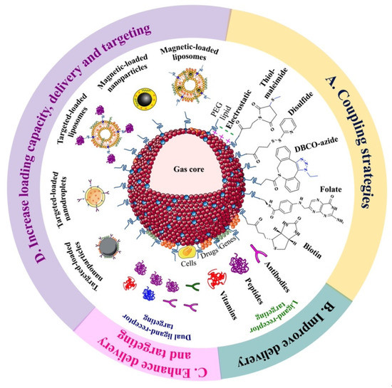 3.4. MBs Conjugated with Magnetically or Molecularly Targeted Loaded Carriers