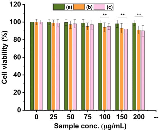 3.3. In Vitro Cytocompatibility (MTT Assay) Study