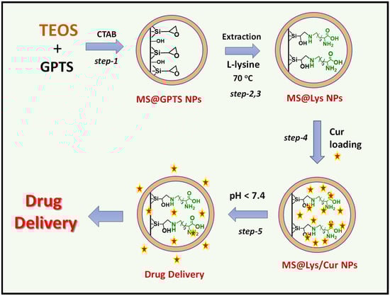 2.3. Preparation of L-Lysine Modified Mesoporous Silica Nanoparticles (MS@Lys NPs)