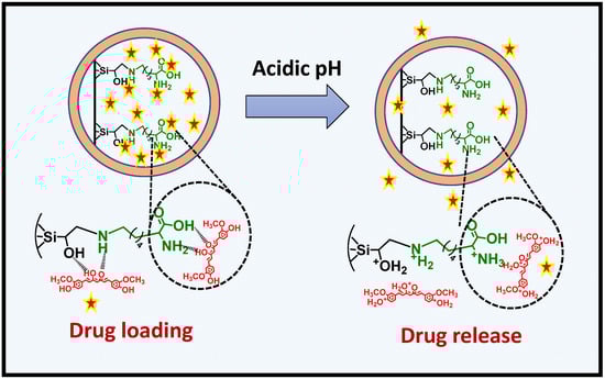 - Moorthy, M.S.; Park, J.-H.; Bae, J.-H.; Kim, S.-H.; Ha, C.-S. Mesoporous organosilica hybrids with a tunable amphoteric framework for controlled drug delivery. J. Mater. Chem. B 2014, 2, 6487. [Google Scholar]