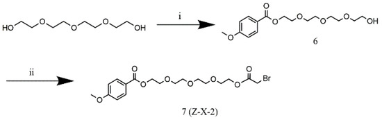 The synthetic route of the Z-X-2 compound. (i) Toluenesulfonyl chloride, CHCl2, room temperature, overnight; (ii) bromoacetyl bromide, Et3N, CHCl2, room temperature, overnight.