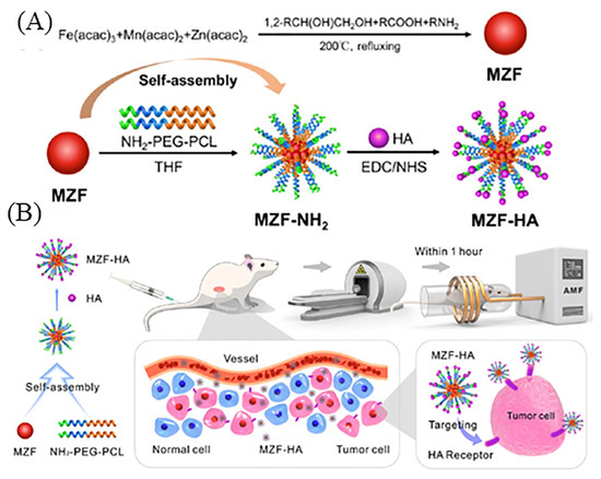 - Wang, Y.; Zou, L.; Qiang, Z.; Jiang, J.; Zhu, Z.; Ren, J. Enhancing targeted cancer treatment by combining hyperthermia and radiotherapy using Mn-Zn ferrite magnetic nanoparticles. ACS Biomater. Sci. Eng. 2020, 6, 3550–3562. [Google Scholar] [CrossRef] [PubMed]