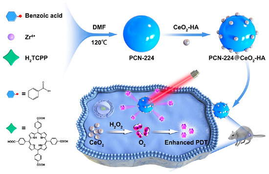 - Chen, K.; Sun, X.; Liu, Y.; Yang, Y.; Shi, M.; Yu, J.; Zhang, S.; Shi, P. CeO2-Decorated Metal-Organic Framework for Enhanced Photodynamic Therapy. Inorg. Chem. 2020, 61, 16307–16316. [Google Scholar] [CrossRef] [PubMed]