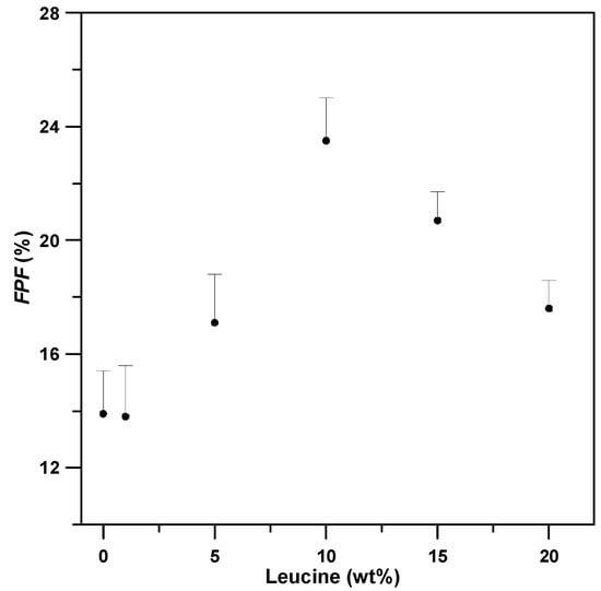 Fine particle fractions (FPFs) of γ-CD carrier powder varying with the addition of leucine (wt%).