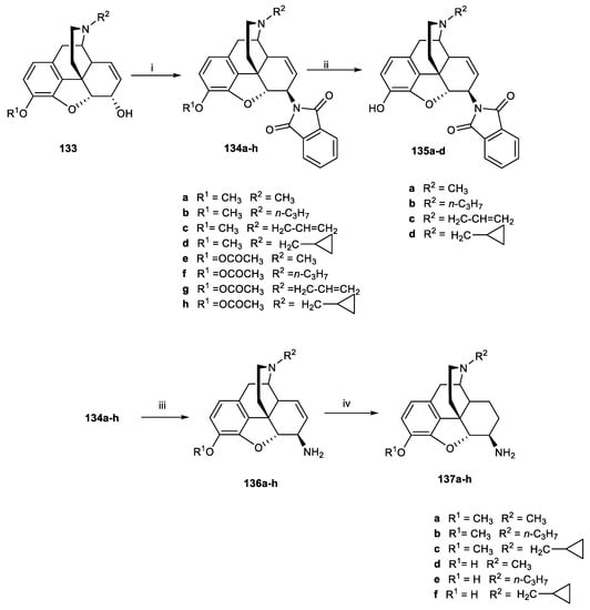 By converting the C6-hydroxyl of morphinans to amine, a group of compounds called aminomorphinans have been produced. The synthesis of pharmacologically active analogues of aminomorphinans through the Mitsunobu reaction led to the development of a variety of derivatives [61,62,63].