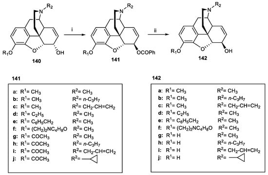 The Mitsunobu reaction has gained much attention in the field of natural products [64,65,66]. Several researchers have reported the application of this method for the synthesis of novel morphine derivatives.