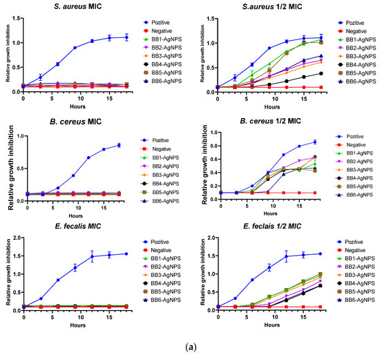 | BB6-AgNPs | 13.41 ± 0.46 b | 42.82 ± 0.72 e | 8.17 ± 1.23 b |