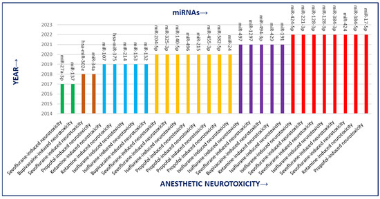Study status (2017–2022) for anesthesia-induced neurotoxicity under potential approach for neurotoxicity alleviation via miRNA.