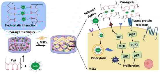 - Li, Z.-W.; Li, C.-W.; Wang, Q.; Shi, S.-J.; Hu, M.; Zhang, Q.; Cui, H.-H.; Sun, J.-B.; Zhou, M.; Wu, G.-L. The cellular and molecular mechanisms underlying silver nanoparticle/chitosan oligosaccharide/poly (vinyl alcohol) nanofiber-mediated wound healing. J. Biomed. Nanotechnol. 2017, 13, 17–34. [Google Scholar] [CrossRef] [PubMed]