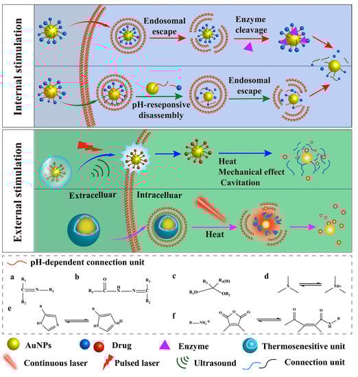 - Cui, T.; Liang, J.J.; Chen, H.; Geng, D.D.; Jiao, L.; Yang, J.Y.; Ding, Y. Performance of doxorubicin-conjugated gold nanoparticles: Regulation of drug location. ACS Appl. Mater. Interfaces 2017, 9, 8569–8580. [Google Scholar] [CrossRef]