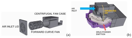 (a) Fan design and (b) working diagram of the add-on device for dry powder inhalers (Accuhaler).