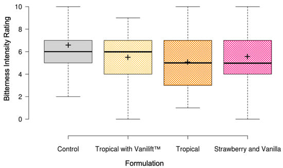 | Formulation | Bitterness Mean | Sweetness Mean | Sourness Mean | Bitter aftertaste Mean |