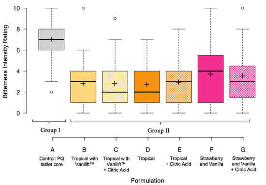 - Muoka, L.C.; Ross, S.A.; Mithu, M.S.H.; Nandi, U.; Douroumis, D. Comparative taste-masking evaluation of microencapsulated bitter drugs using Smartseal 30D and ReadyMix for paediatric dosage forms. AAPS PharmSciTech 2021, 22, 141. [Google Scholar] [CrossRef]