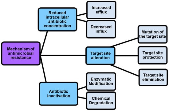 As shown in Figure 1, antimicrobial resistance mechanisms include drug inactivation, decreased intracellular drug concentration, and altered drug targets [5].