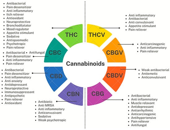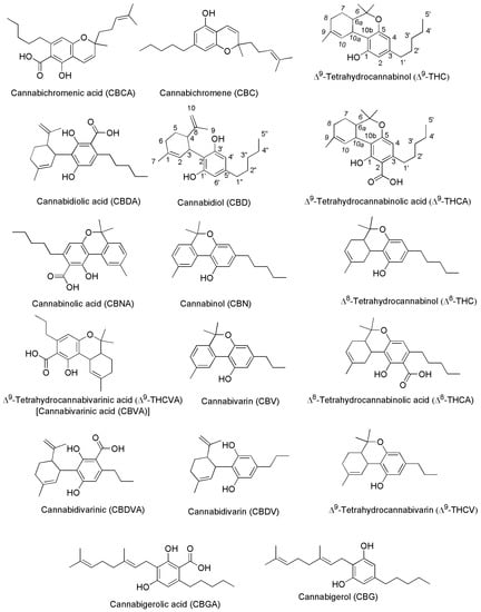 80. Walsh, K.B.; McKinney, A.E.; Holmes, A.E. Minor Cannabinoids: Biosynthesis, Molecular Pharmacology and Potential Therapeutic Uses. Front. Pharmacol. 2021, 12, 777804. [Google Scholar] [CrossRef]