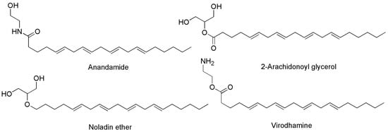 Figure 3. Chemical structure of the main ECs found in humans acting on CB1 and/or CB2 receptors.