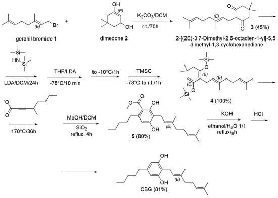 101. Tietze, L.-F.; Kiedrowski, G.V.; Berger, B. A New Method of Aromatization of Cyclohexenone Derivatives; Synthesis of Cannabichromene. Synthesis 1982, 8, 683–684. [Google Scholar] [CrossRef]