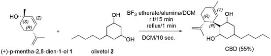 108. Baek, S.H.; Srebnik, M.; Mechoulam, R. Boron Trifluoride Etherate on Alumina—A Modified Lewis Acid Reagent. An Improved Synthesis of Cannabidiol. Tetrahedron Lett. 1985, 26, 1083–1086. [Google Scholar] [CrossRef]