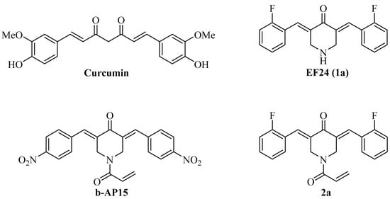 - Adams, B.K.; Cai, J.; Armstrong, J.; Herold, M.; Lu, Y.J.; Sun, A.; Snyder, J.P.; Liotta, D.C.; Jones, D.P.; Shoji, M. EF24, a novel synthetic curcumin analog, induces apoptosis in cancer cells via a redox-dependent mechanism. Anticancer Drugs 2005, 16, 263–275. [Google Scholar] [CrossRef] [PubMed]