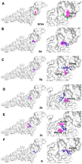 | 1a (EF24) | −7.3 | 1 | LYS574 | 2.5 |