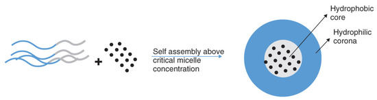 Self-assembly of nanomicelles and drug encapsulation. Reproduced from Vaishya et al. [128] with permission.