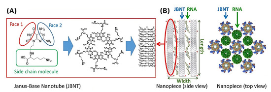 Structure and assembly of (A) JBNTs and (B) nanopieces with RNA as nano-rod delivery vehicles. Reproduced from Sands et al. [149] with permission.
