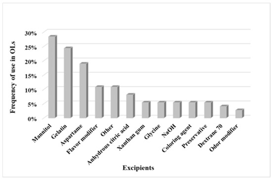 Frequency of individual excipients incorporated into OLs on the market. “Other”: excipients, which appeared only once.