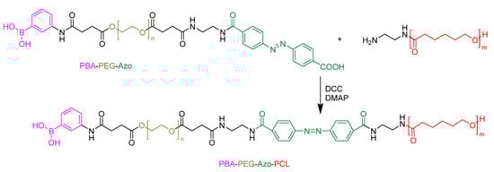 - Yin, W.; Wang, Y.; Xiao, Y.; Mao, A.; Lang, M. Phenylboronic acid conjugated mPEG-b-PCL micelles as DOX carriers for enhanced drug encapsulation and controlled drug release. Eur. Polym. J. 2022, 173, 111235. [Google Scholar] [CrossRef]