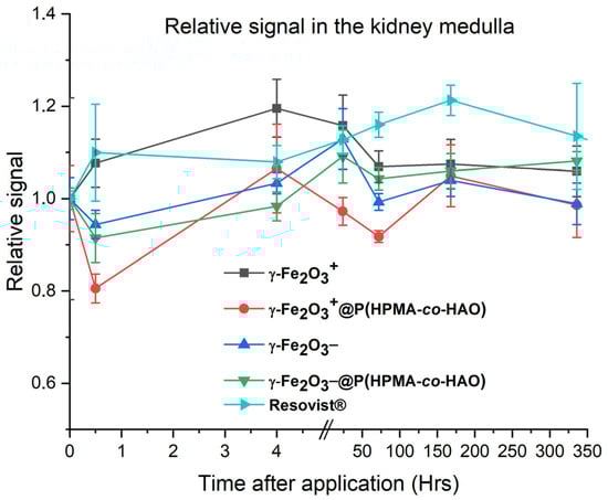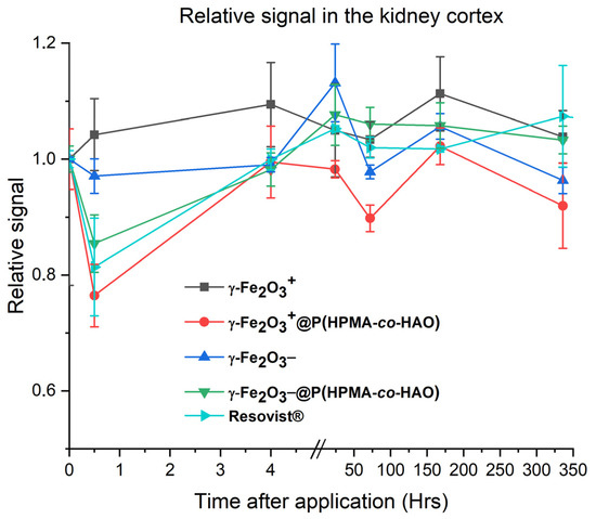 Signal intensity was evaluated in the liver and kidney (medulla and cortex separately). The signal was related to that obtained during control measurement before nanoparticle application.