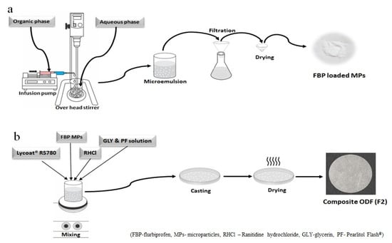Schematic representation for the development of (a) Microparticles and (b) Composite ODF.