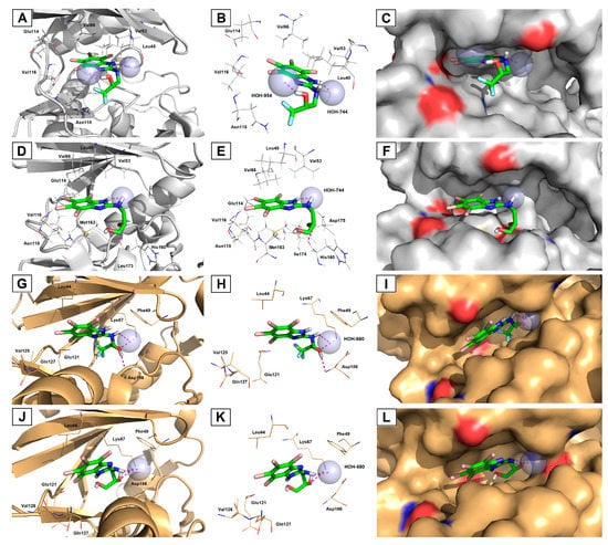 The crystal structures of human protein kinases, namely CK2-α (PDB code: 4KWP) [] of the highest available resolution (1.25 Å) and PIM-1 (PDB code: 4DTK) [] with a resolution of 1.86 Å, were downloaded from the PDB database (http://www.rcsb.org/pdb/). The crude target proteins were prepared using the UCSF Chimera v. 1.11.2 package (http://www.cgl.ucsf.edu/chimera/; accessed on 2 December 2016) [] after removing all nonstandard molecules, including 4,5,6,7-tetrabromo-1-(2-deoxy-beta-D-erythro-pentofuranosyl)-1H-benzimidazole (EXX), sulfate ion (SO4), 1,2-ethanediol (EDO), triethylene glycol (PGE), di(hydroxyethyl)ether (PEG), and dimethyl sulfoxide (DMS) in the case of 4KWP, as well as (5Z)-5-{2-[(3R)-3-aminopiperidin-1-yl]-3-(propan-2-yloxy)benzylidene}-1,3-thiazolidine-2,4-dione (7LI), EDO, and SO4 in the case of 4DTK. All the procedures are described in detail in Supplementary Materials (Section S5.1).