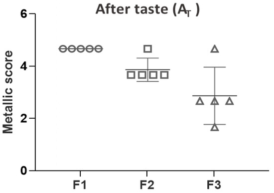 Metallic scores of PZQ formulations (after taste AT).