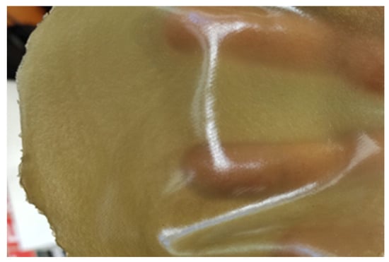 | Gels | CS FG90 % (w/w) | Green Clay % (w/w) | Glycerol % (w/w) | Aqueous Solution of Lactic Acid % (w/w) | Final Patch Name | Aspect of the Obtained Patch |