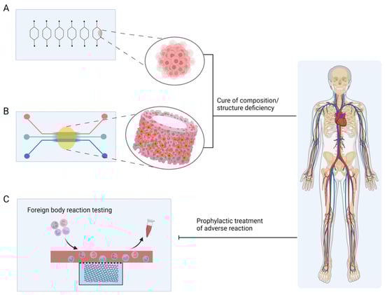 In addition to drug detection and disease modelling, OCs have great potential for use as a flexible medical resource, a development that represents an unexpected breakthrough for both medical treatment and OC itself. Perennial bone marrow-on-a-chip [150], vascular-on-a-chip as a therapeutic scaffold [63], and foreign body corresponding-on-a-chip [87] as an aid for treatment monitoring are currently being investigated.