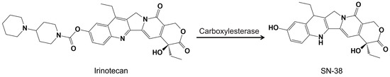 Bioactivation of irinotecan to SN-38, an active form, by carboxylesterase enzyme [46].