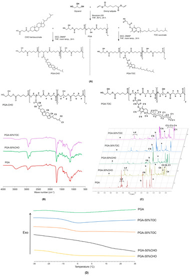 2.2. Syntheses of CHO- and TOC-Grafted PGA
