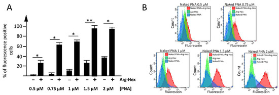 - Ghavami, M.; Shiraishi, T.; Nielsen, P.E. Cooperative Cellular Uptake and Activity of Octaarginine Antisense Peptide Nucleic acid (PNA) Conjugates. Biomolecules 2019, 9, 554. [Google Scholar] [CrossRef]