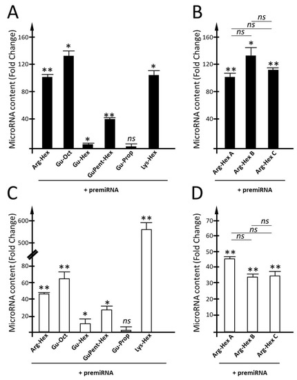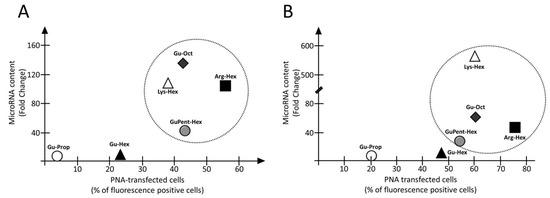 - Gasparello, J.; Lomazzi, M.; Papi, C.; D’aversa, E.; Sansone, F.; Casnati, A.; Donofrio, G.; Gambari, R.; Finotti, A. Efficient Delivery of MicroRNA and AntimiRNA Molecules Using an Argininocalix[4]arene Macrocycle. Mol. Ther. Nucleic Acids 2019, 18, 748–763. [Google Scholar] [CrossRef] [PubMed]