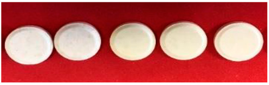 Another physical strength parameter, tensile strength (Ts), can be calculated by knowing the tablet’s diameter, thickness, and resistance to crushing. With this aim, Equation (5) was used: