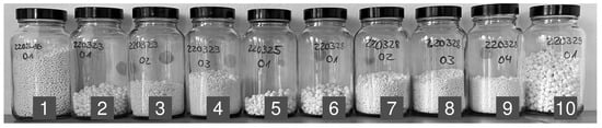 In total, we performed ten granulation experiments. Figure 2 shows the obtained granules for each run.