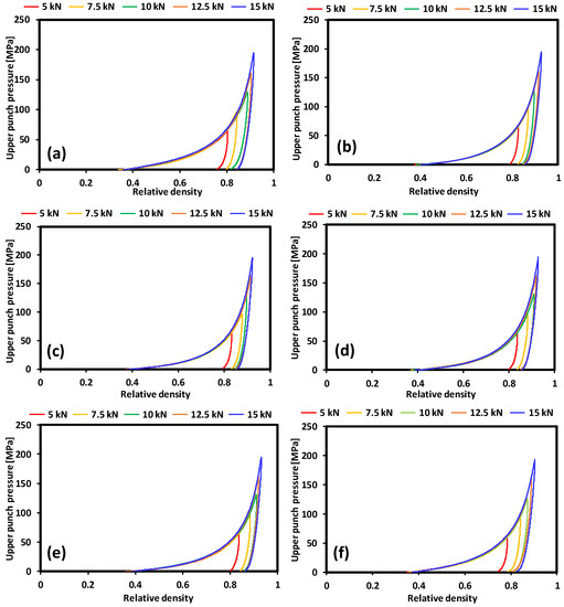 and the relative density was calculated using Equation (6); m is the mass of the tablet after ejection,