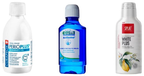 - SPLAT Professional Bio-Active Mouthwash White Plus. Available online: https://www.splatoralcare.uk/products/mouthwash-white-plus (accessed on 22 June 2023).