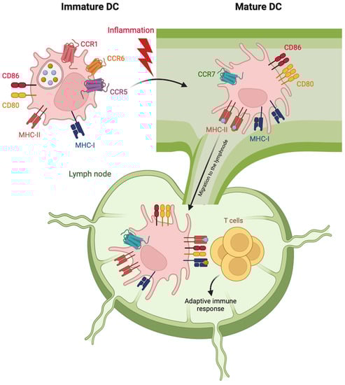 DCs commonly reside in blood, non-lymphoid and lymphoid tissues with the unique role among immune cells to activate and tailor T cell responses to combat specific pathogens and foreign antigens [36]. From a functional point of view, DC can be classified in immature and mature cells (Figure 1).