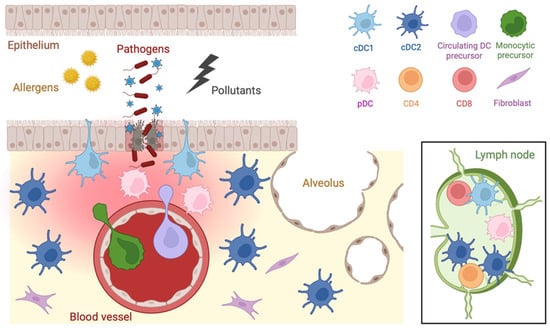 Given the central role of DCs in immune regulation, as well as their strategic anatomical location, it is not surprising that the dysregulation of DC functions may represent a pathogenetic determinant, as well as a relevant pharmacological target in different lung diseases [62], as described in Section 5.
